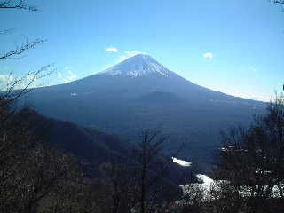 三方分山につくと、富士山方面がよく見えた。冠雪した姿が美しい。二人でうっとりと眺めていると反対方向からひとり・・・そしてそのあとに20名近いグループがやってきた。それをしおに下山。うっかり釈迦が岳へのコースを確認し損なってしまった。静かな山だと思っていたが、思わぬ団体にびっくり。しかもそのあとも次から次へと登ってきた。休憩していた3人グループの人と少し立ち話。静岡の人だというので、少し静岡の山の話など聞いた。こんな一期一会も楽しい。 下りまでずっと整備された道で歩きやすかった。パノラマ台の方もこのくらい整備されているのだろうと想像しつつ、歩いてきた道を振り返って見上げてみる。なかなかきつい登りだ、こちらも。 女坂峠まで来たらここでも30名近い団体が休憩していた。ここは以前王岳の下りで通ったはずだ。ここからの下りもけっこうあり、女坂でゆっくり休憩している人たちも気持ちが分かる気がした。木の間からは今登った三方分山が見える。間もなく沢の音が耳にはいり、沢沿いに出る。やがて道幅が広がり、周辺の民家を眺めながら精進湖へと向かう。住む人もいないのか、壊れそうな家が多い中、新築しているところもあった。ちょっとアニメ映画『千と千尋の神隠し』の風景を思い出した。 精進湖岸道路を10分ほどで県営駐車場だが、その間、湖越しに見る富士山は素晴らしかった。 車の中でお昼のパンを食べながら、時間が早いので近くの足和田山に行ってみることにした。 |