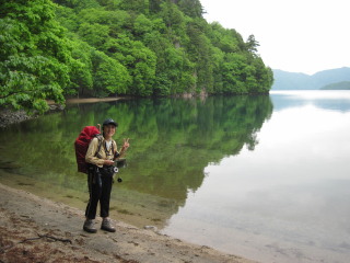 | H24年6月17日(日) 天気;雨のち晴 Member.2人 【コ ー ス】(〜は歩、休憩時間含む) 竜頭ノ滝P8:06〜千手ヶ浜9:52-12:08〜熊窪12:28〜分岐13:24-32〜高山14:10-26〜竜頭ノ滝P15:37(所要時間約7時間30分) |