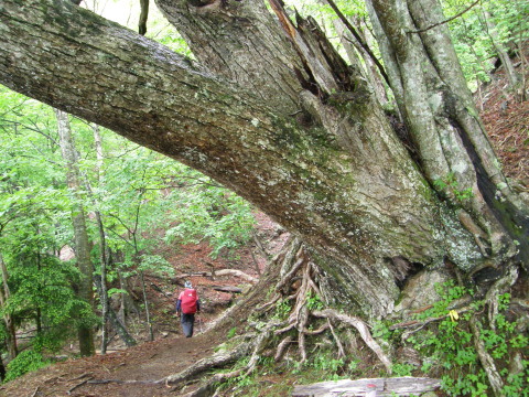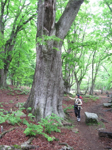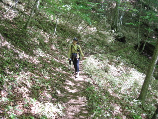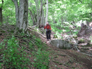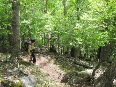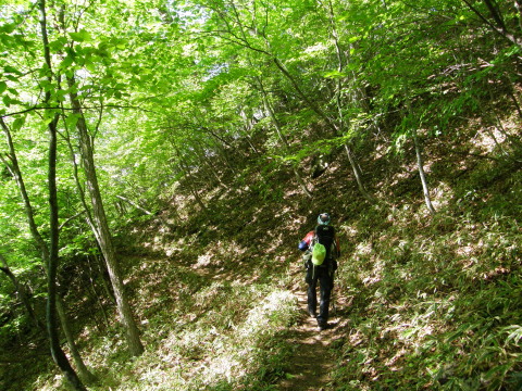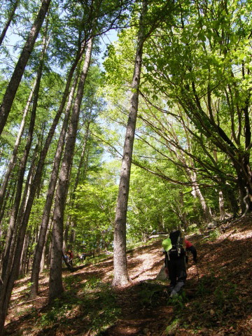 小休止して高山へ。 青空から緑陰に柔らかく光が射し込んできます。 ![]() 高山から下ってくる数グループと すれ違いました。 |