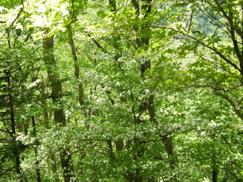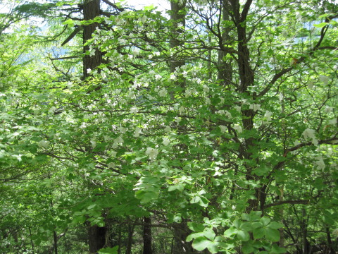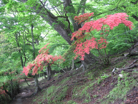 もう少し早い時期(5月下旬から6月にかけて)にはこの遊歩道にもトウゴクミツバツツジ、シロヤシオなど咲くようです。 |