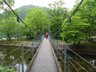 西ノ湖や白根山系から流れ出ている川にかかる乙次郎(おとじろう)橋。橋の下には魚がたくさん泳いでいました。 |