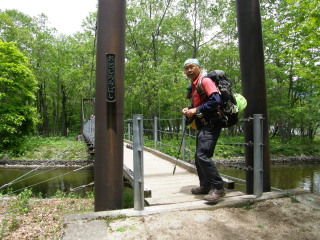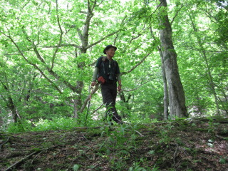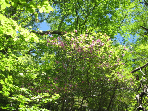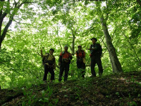 新緑の気持ちいい樹林帯を歩いていると、トシちゃんが立ち止まり一声発声。。。 ん? えっ? 思わず辺りを見回して・・・ |