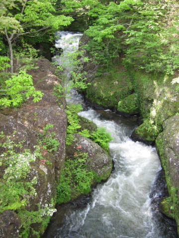 | 中禅寺湖湖岸の遊歩道を行きますが、 緑がとてもきれいです。 ![]() |