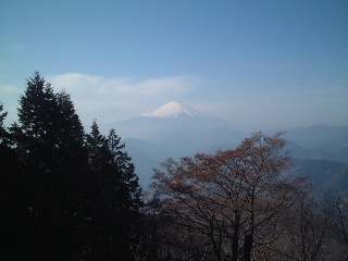伊勢沢ノ頭山頂は平坦な登山道の途中にあった。葉の落ちた落葉樹が何とも冬っぽい感じで雰囲気が良かったが、その周りは植林で展望は良くなかった。そのまま通過。ここからは急な登り下りはなくのんびりハイク。途中鹿柵が邪魔ではあったが、富士山の眺めの良いところがあり、しばし堪能。その辺りは山神峠へのしっかりした登山道がある分岐だった。そちらへ下れば右ユーシン、左丹沢湖へと通じる林道へと出るはずだ。また山神峠を玄倉へと行くこともできるようだが、いずれも通ったことはない。