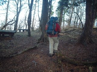 シダンゴ山から伊勢沢ノ頭まではアップダウンがきつかった。伊勢沢ノ頭の少し下で休憩したとき、初めて下ってくる単独男性と出会った。ウエストバックだけの軽装、山岳マラソンの練習のようにも見えなかったがこの辺りを庭のように歩いている人なのかもしれない。かたや私たちはいつもながらビバーク可能な装備。したがってザックの重さ約16キロ・・・