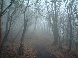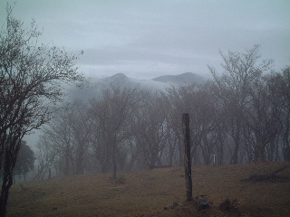 櫟山(くぬぎやま)には登るという感覚もあまりないままに到着。片側にススキが広がっており、山頂は広々と気持ちよさそうだった。天気が良かったらのんびりと休みたいところだ。ガスっていたので眺めることは出来なかったが、展望が良いと聞いていただけに残念。この時は幻想的というより密集したススキの中から何か出てきそうでむしろ不気味だった。早々に下山。