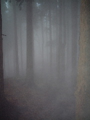 栗ノ木洞山頂は針葉樹林帯で展望は望めない。天気が良ければ隙間から見えるものかどうか?周囲はやはり幻想的な雰囲気で悦に入る。静かだ。このルートでも最後まで誰にも出会わなかった。芝生の広場を指し示す標識があったり、作業道と思われるところがあるが、相変わらず防鹿柵に沿って下りていく。