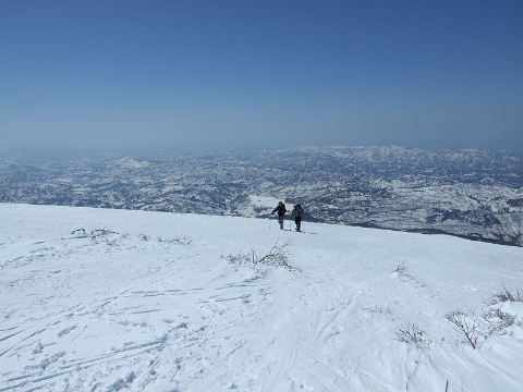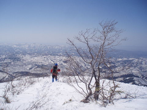この後山頂でもお話し、下山ルートを教えていただいて私達もそちらに変更したのでした。私達はこの時期の守門は初めてでしたので同ルートを戻るつもりでいましたが、別ルートを教えていただいたお陰で変化のあるコースになりました。感謝です。 |