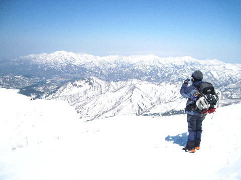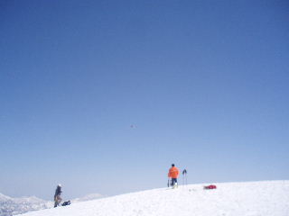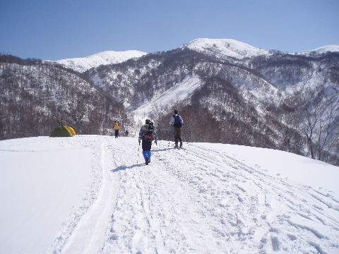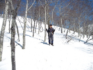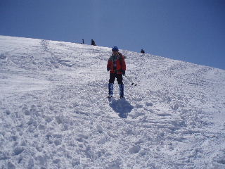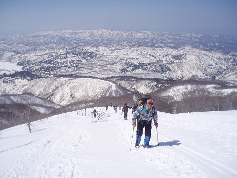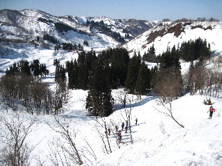 JOさんからの情報でもうお一人再会できそうな方が、どうやらこの後ろの山スキーのグループの中にもいらっしゃるらしいのです。 |