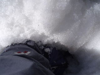 でもお陰で片足がズボーっと膝上まではまって、しばらくもがいてしまいました^_^; なかなか抜けずトシちゃんを捜しましたが、この時トシちゃんも同じようにはまっていたらしい・・・^_^; まったくトシちゃんが消えた時に限って何かが起こる・・・(~_~;) |