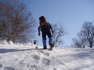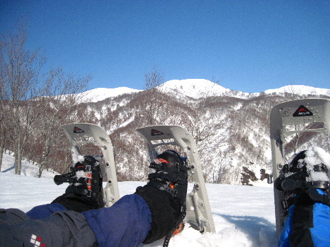 ようやく脱出して下りたところで再びスノーシュー装着^_^; |