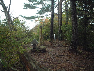 この山も人の手が入っていない(いじられていない)自然林豊かで黄葉が始まっている。ミツバツツジが多く、春はさぞや美しく彩られることだろう。登りは2時間近くかかるとあったが、約1時間であっけなく山頂に着いてしまった。一瞬拍子抜けしたような夫の声は、続いて安堵の声に変わった。