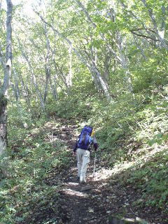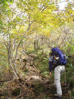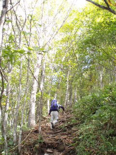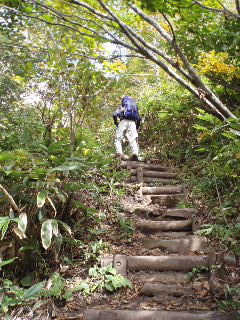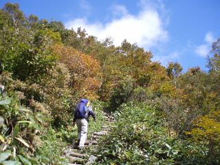 | こう見ると急登です^_^; 気持ちの良い黄葉の樹林帯。 |