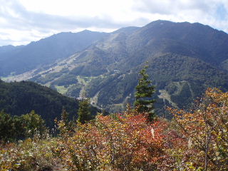 | 比較的近くて紅葉が楽しめそうな所ということで、谷川方面を選びました。天神平は丁度見ごろのようですが、ロープウェイがあるため時間の制約と混雑が予想されいつもパスしています。ここはもう少し先の楽しみにとっておきましょう(^^ゞ 今回は平標山と苗場山にしましたが、予想以上に紅葉がきれいでした。 |