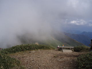 松手山を振り返ります。 その向こうに見えるはずの苗場山ですが山頂はガスっています。 今日はこちらで正解だったようです。 ↓ |
