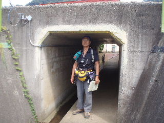 中央線のガード下を横切ります。背の高い人は大変です・・・背伸びがちに立つトシちゃん(^o^) 背の低いsanaeですら屈んで通り抜けました(笑)