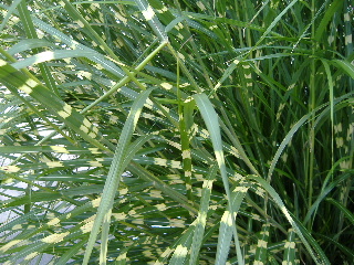 | よく見ると葉に斑点がついています。こういう種類のススキなのでしょうか? |