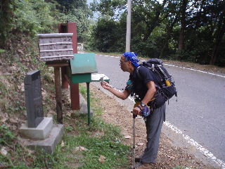 登山道口には計画書の投函ポストと句碑。 |