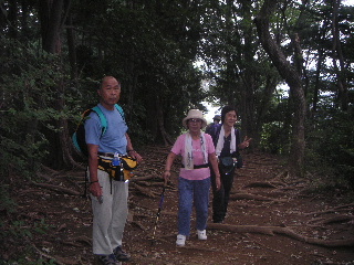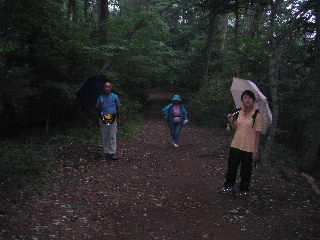 コースはいつもの歩き慣れた稲荷山コースから行き、山頂は巻いて1号路を行った。雨は降っていなかったが、東屋で休んでいるときに降ってきた。勝手知ったる慣れた山なので地図も持たず他の必需品も持たず、ただ合羽と傘、着替えを持っていっただけだった。何しろ目的が目的だから・・。ところが山頂を巻くことはほとんど無いものだから、巻いたが為に6号路分岐でちょっと道を誤った。少し下って、あれ?っと気がついた。分岐の大きな看板で確認したのに、眼鏡をかけていなかったのと雨の薄暗さの中、思いこみによるミスだった。少し下っただけなのでちょっと登り返せば済むことなのだが、登り返しの嫌いな夫はもうむくれていた。いつもこうだ!ムッ!気分を壊さないよう、娘と母には明るく謝っておどける。