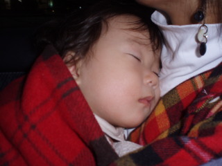 抱っこも大変なので、抱っこひもの中に。 | |||