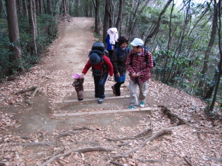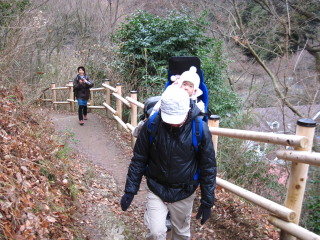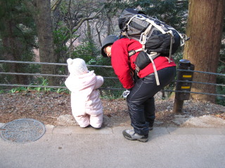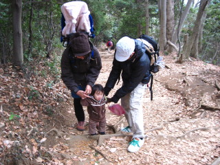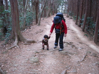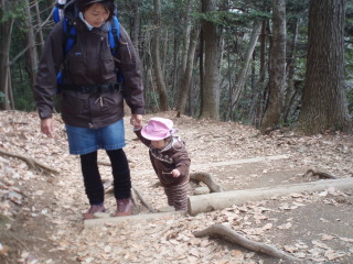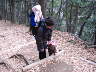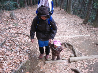 最初は階段が続きますから、背負っているパパは大変です。 | |||