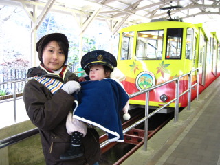| 帰りはケーブルを使用でした。車掌さん?の帽子をお借りして。 | ![]() |