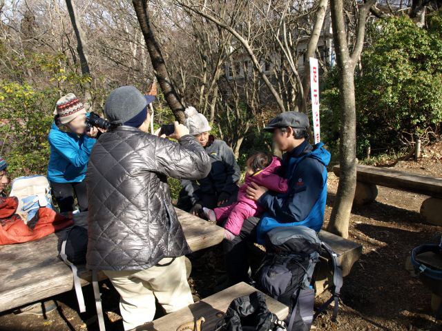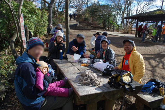 | H24年12月24日(月) 天気;晴れ Member.7人(かいねこさん、heppocoさん、¥さん、まゆ太さん、ちび太ちゃん、トシちゃん、sanae) 【コ ー ス】(〜は歩、休憩時間含む) P〜京王高尾山口駅9:00〜ケーブル清滝駅前〜2号路〜1号路〜高尾山山頂11:54-12:55〜(稲荷山コース)〜東屋〜ケーブル清滝駅前〜(蕎麦屋さん)〜P15:35 |