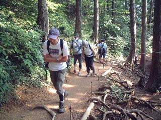 | 登り始めが既に午後2時。さぞや暑いのではと思っていたが、予想に反して空気は爽やかで気持ちよかった。4人分の団扇を持っていったのに、全然必要なかった。 | |||||||||