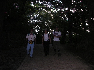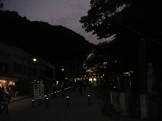 | 諦めて下りることに。 写真では暗く見えるが、ライトは必要ない明るさの中、表参道を歩いていく。 |