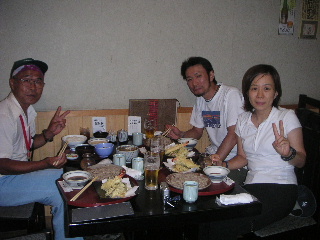 | 近くのお蕎麦屋さんで。此処の方が落ち着いてよかったかも・・・。しげぞうさん、ビアマウントで私たちを捜しているかなと話していたのだが、このころしげぞうだんなさんも近くにいたとは!びっくりだった(ここでもニアミス)。それにしても、しげぞうさんたちとは幌尻の事などいろいろお話したかったのに、残念!残念! | |||||||||