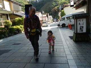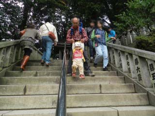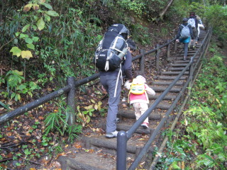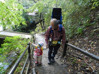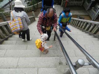 | 狭いし、急で危ないから抱っこしておりようね。 | ![]() |