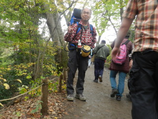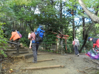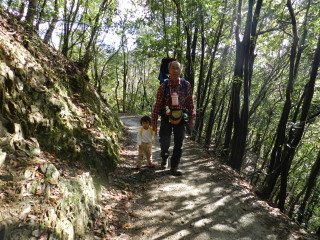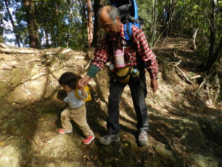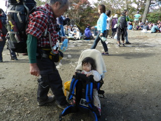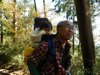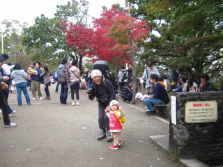 | 紅葉にはまだ少し早く、来週以降が見頃になりそうです。でも観光地の賑やかさで広い山頂も座る場所を見つけるのが大変なくらいの混雑。久々に孫をつれての山歩きでしたが山の雰囲気を味わうよりも人の多さに目をパチクリの二歳のマゴタンでした。 |