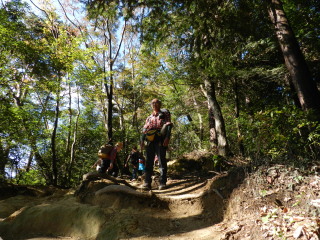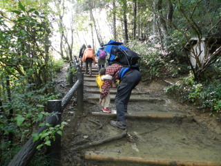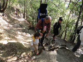 後から後から登ってきます。 マゴマゴしていたので細い登山道では迷惑と思い、途中から抱っこです(^^ゞ |
