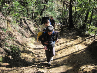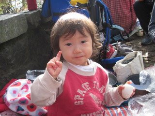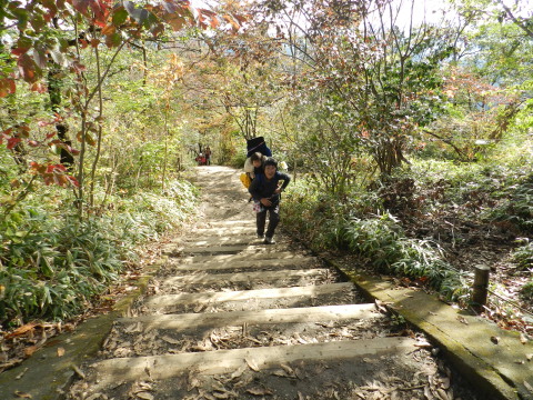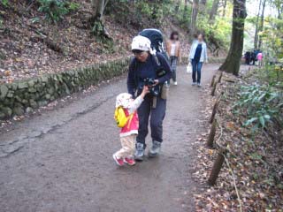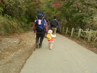 | H23年11月12日(土) 天気;晴 Member.3人(あき2歳、トシちゃん、sanae) 【コ ー ス】(〜は歩、休憩時間含む。) 高尾山自動車祈祷殿駐車場9:20〜稲荷山登山口9:53〜(稲荷山コース)〜東屋11:33-44〜高尾山山頂12:33-14:48〜(一号路)〜下山16:52〜高尾山自動車祈祷殿駐車場17:00(所要時間約7時間40分) |