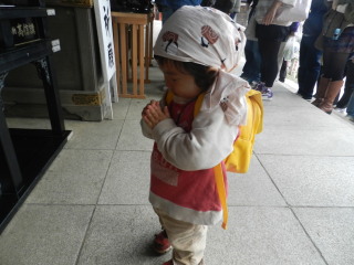 | みんな並んでいる脇を一人でチョコチョコ上っていき、何も言わないのに手を合わせていました。ちゃんと見ているんですね。学習してるなぁ! | ![]() |