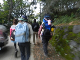 | ケーブルカーで下りようと思っていましたが乗り場では整理券を発行するほどいっぱいの人であふれてました。 並んでも何回目になるやら。下までは2キロちょっと。下りですから30分ほどで下りられそうですから歩いて下りることに。 |