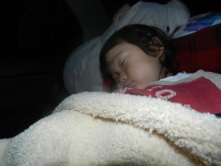 マゴタンはこの後車に乗せても起きず、家に着くまでずっと眠ったまま(-_-)zzz 3時間くらいぐっすりでした(^_^) そんな寝顔を見ながら次はどこへ連れていこうかと考えている私達でした(笑) |