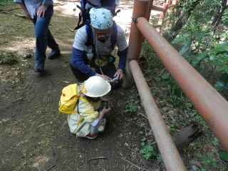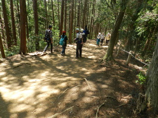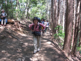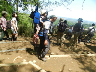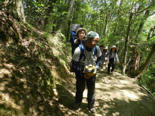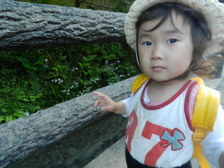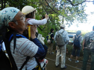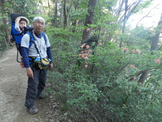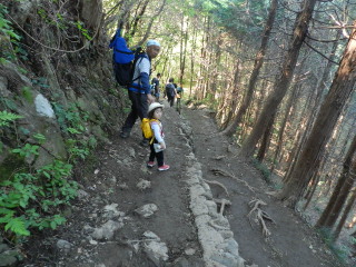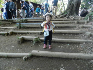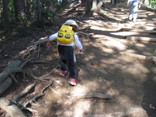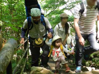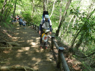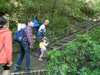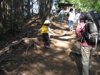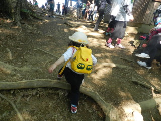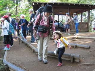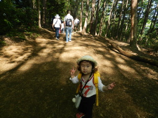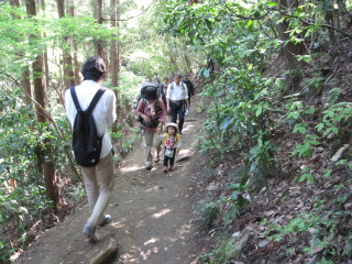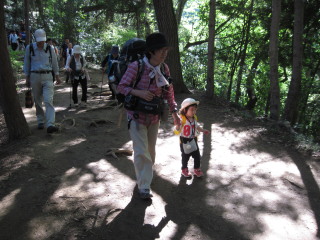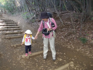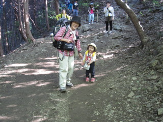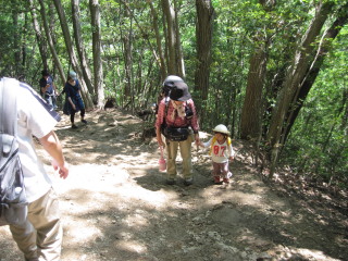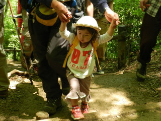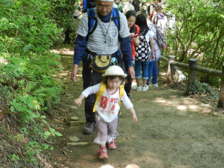 いよいよ山歩き。おねえちゃん、おじいちゃんに引っ張られているね^_^; 人が大勢いたから迷子にならないようにしっかり掴んでくれていたんだね。 |