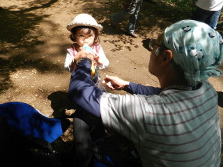 帰りもいっぱい自分で歩いたおねえちゃん。 途中でお花も咲いていたんだって。 |