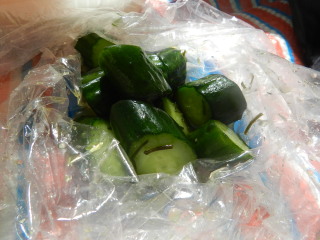 おねえちゃんはキュウリの漬物を作っているんだよ。美味しかったって♪ |