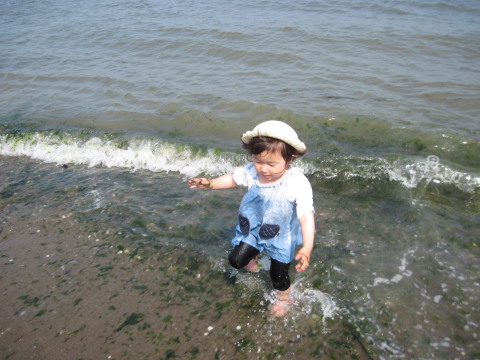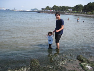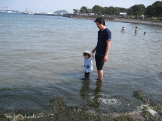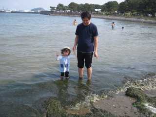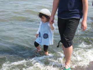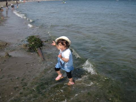 最初はパパと恐る恐る海に入っていたマゴタンですが