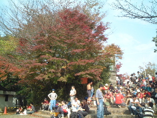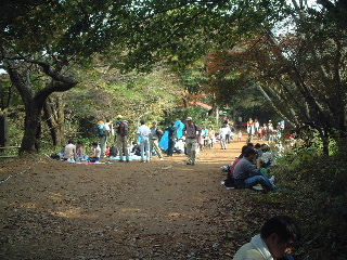 電車に乗れば1時間ほどで高尾山口駅。いつもにも増して賑やかだ。そろそろ紅葉が始まったことと、高尾山を舞台にしたTVドラマ(飯島直子、深田恭子etc)効果なのかも知れない。賑やかな通りをケーブル駅の方へ進む。この時息子から携帯に電話があり、問題なく繋がった。