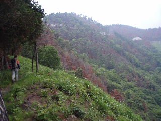 | この日、私達の後に登ってくる人はいませんでしたが、来るかもしれない対向車に注意しながら次の目的地、帯那山へと向かいます。 | |
