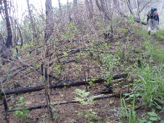 | 上に稜線が見え、山頂は近いかなと思われましたが、この時までこの山で火事があったことなど忘れていました。 | |