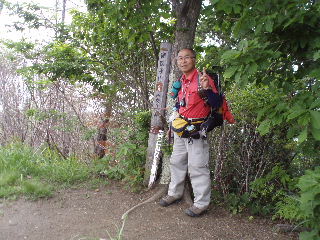 | 狭い山頂ですが誰もいなかったのでゆるゆる休憩しました。あ〜ぁ、展望が良かったらなぁ〜・・・ | |