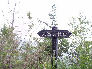 | 右へ行けばこの小高い山が富士見台のようですが、雲って展望は望めないので行くのはやめます。甲州高尾山も右ですが、そのまま左の棚横手山へ。 | |