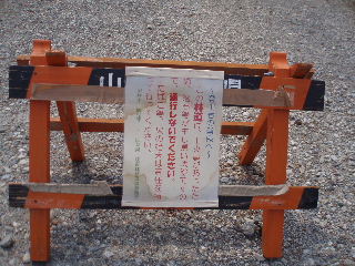 | 整備された道ですが、こんな場所もあります。危険の注意を促しているトラロープ。 | |