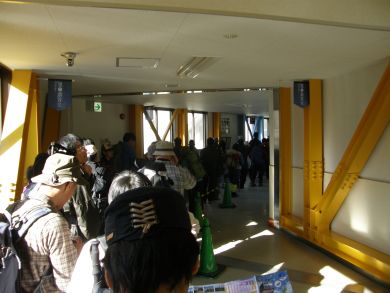 朝一(7時発)で行きたかったのですが、ずっと運転してきたトシちゃんが起きれません。それでも土合駅前にて3時間ほどの仮眠でロープウェイ乗り場へ。 なんやかやと準備に手間取り乗り場に並ぶころには既にやや長い列。ツアーの集団が前の人を追ってかズンズンと進み、「このあたりかしら・・・」なんて言いながら中途半端なところ(ちょうど私たちの脇)に止まったものだから、後ろから「並んでいるんだよー」と声がかかり、この後うしろに下がっていきました。当然のことですけど声をかける人も勇気いりますよね。せっかくの旅が気まずい雰囲気になっては残念です。 |