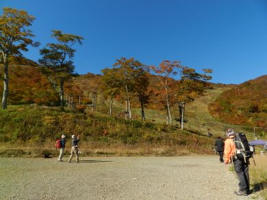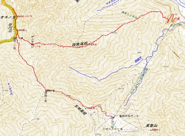 | H24年10月20日(土) 天気;晴 Member.2人 【コ ー ス】(〜は歩、休憩時間含む) 谷川ロープウェイ=天神平9:05〜熊穴沢避難小屋9:52〜(休憩10:13-21)〜肩の小屋11:10-19〜トマの耳11:27-31〜オキの耳11:55〜奥の院12:05-13:27〜西黒尾根分岐〜(西黒尾根)〜ラクダのコル〜ラクダの背15:09-15〜林道16:43〜ロープウェイ駐車場16:55 |