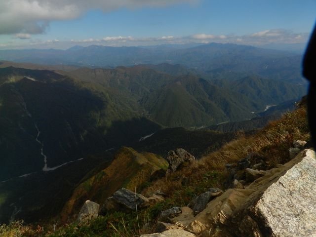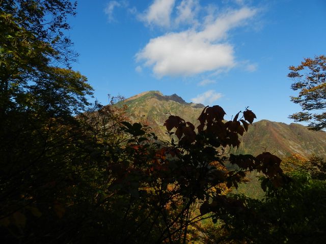 対面に白毛門、笠ケ岳、朝日岳 |